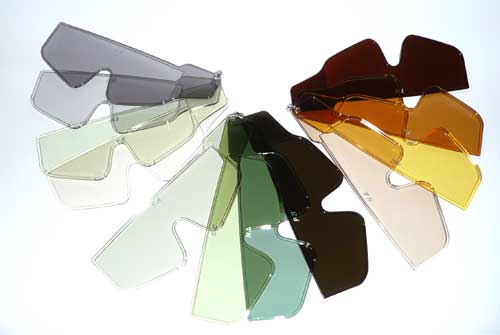 | CCP400・・・紫外線(400nm以下の波長光)をほぼ100%にカットし、 青色光線(400〜500nm以下の波長光)の一部を透過させることで、 レンズの色目をより自然でかけやすいものにしたレンズです。12色 |